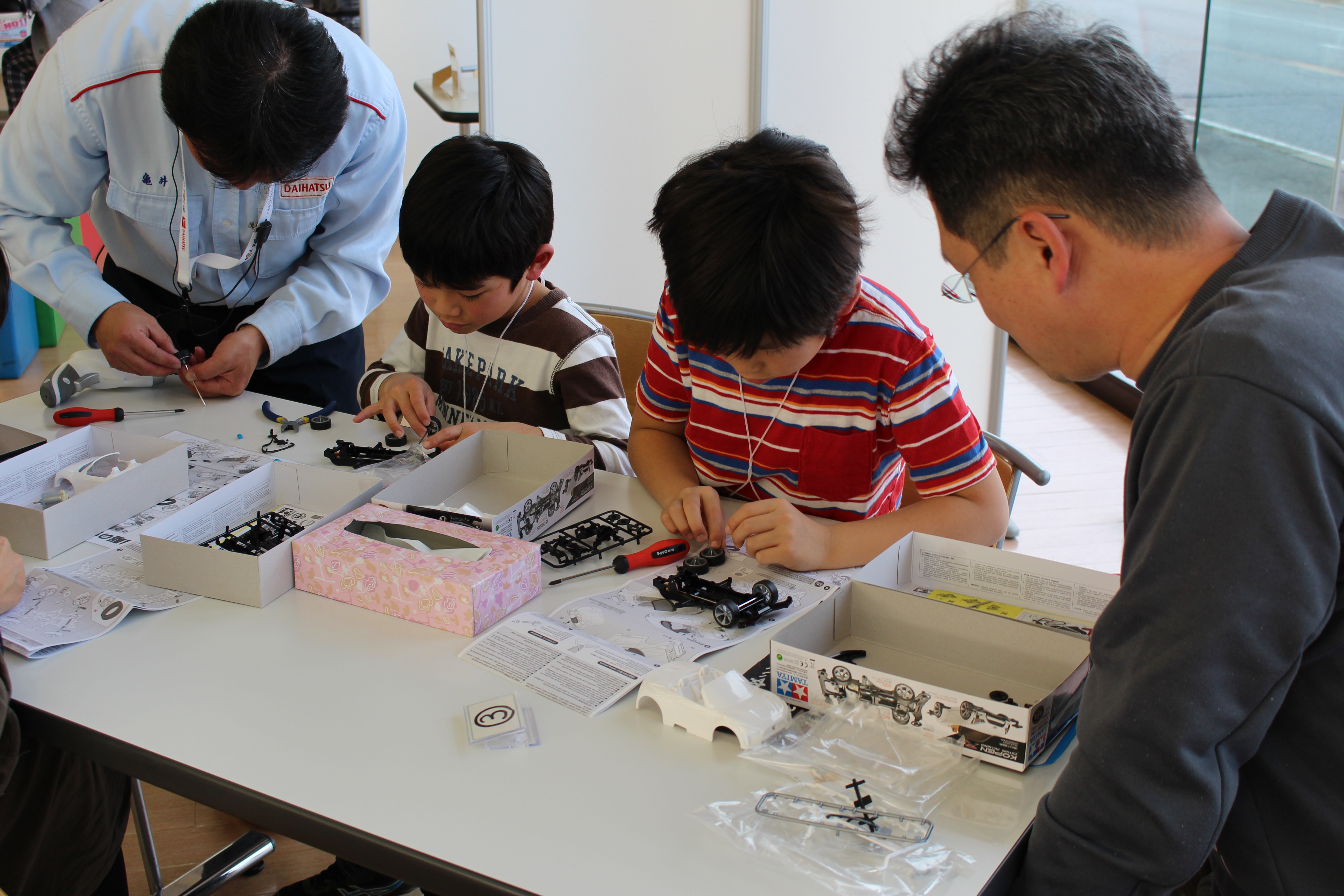 どのお子様もミニ四駆を作るのに真剣でした!!