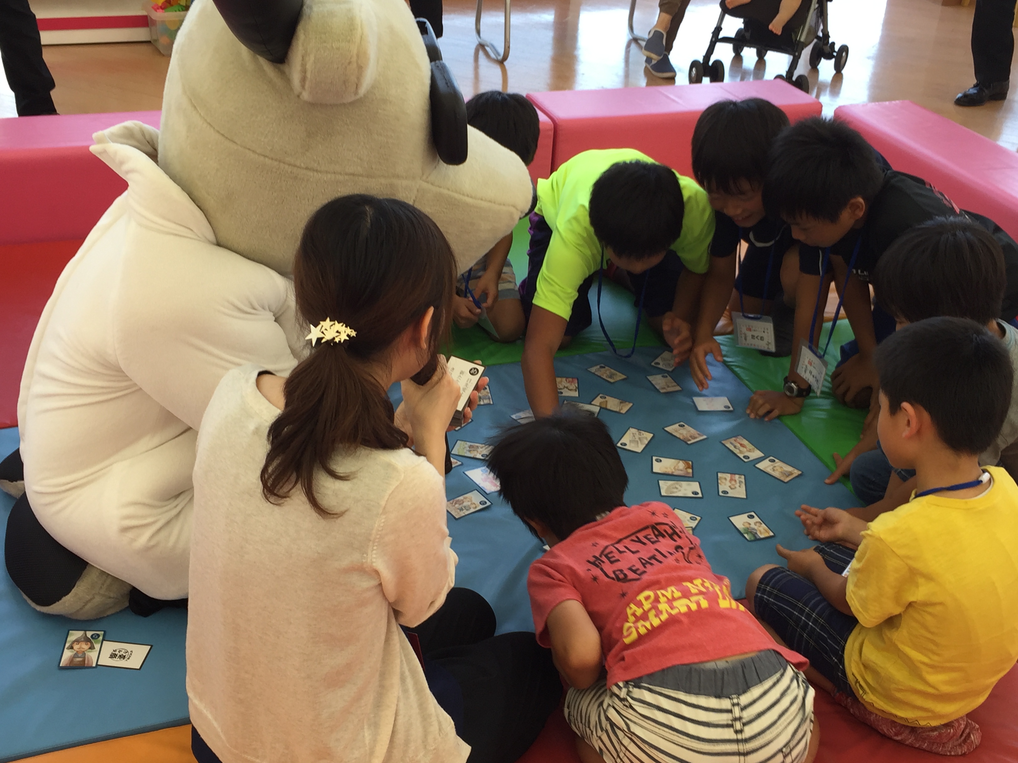 お子様たちは読み上げられたカルタを必死に