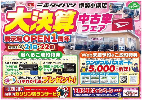 2026年02月12日伊勢小俣店🌸大決算中古車フェア開催🌸