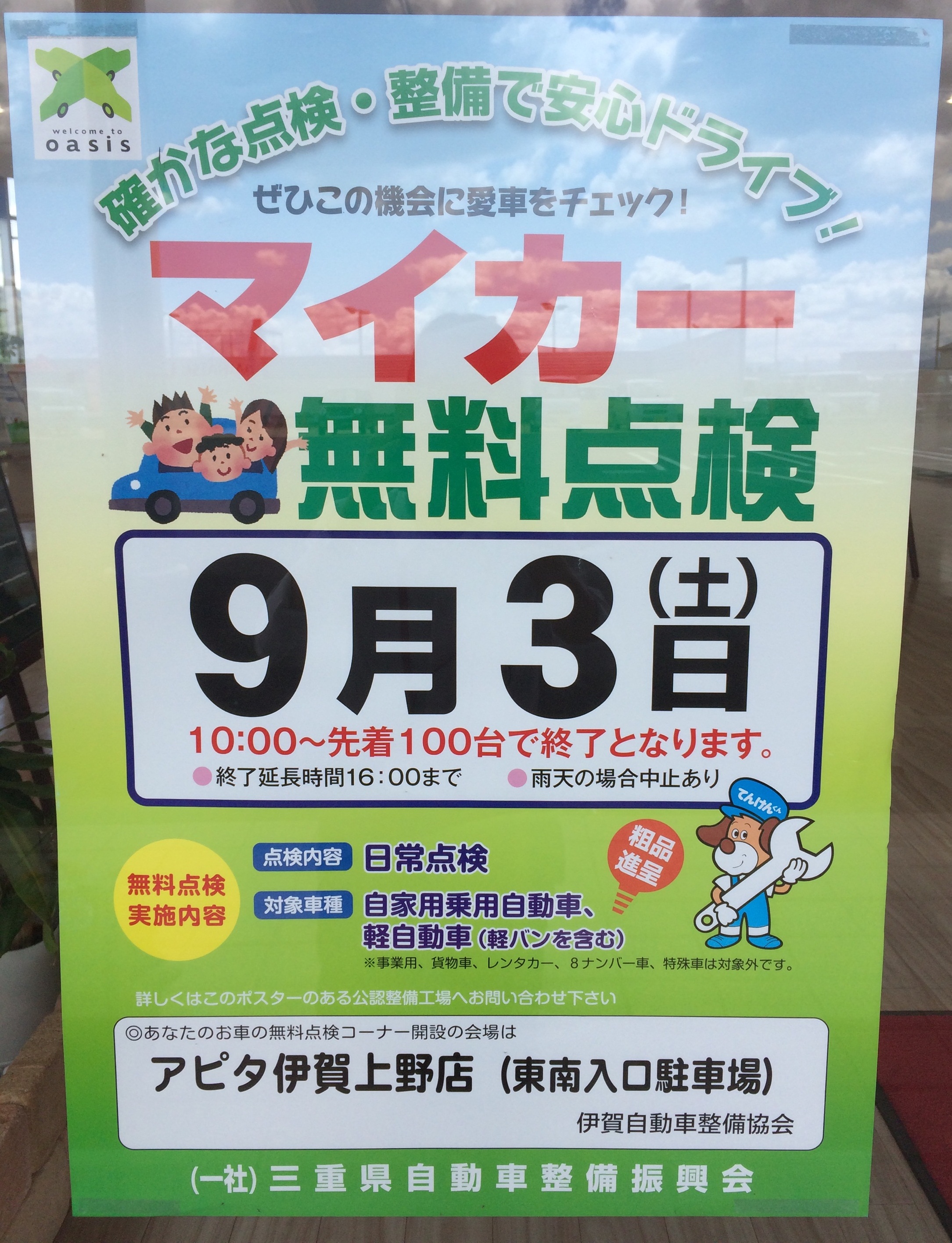 マイカー無料点検が実施されます!(伊賀自動車整備協会さん主催)