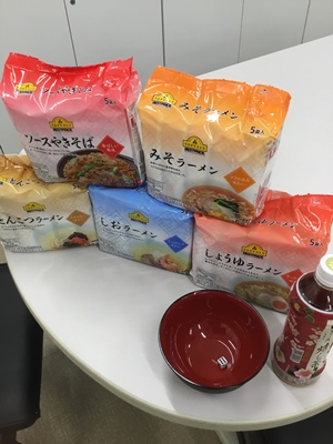 ご来場者様にほうじ茶と、サイコロを振っていただいて出た目に応じて袋麺をプレゼントしております