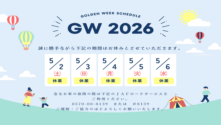 また、GW休暇中のお車に関するお困りごとにつきましては、