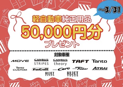 3月31日まで、軽自動車純正用品5万円分プレゼント✨