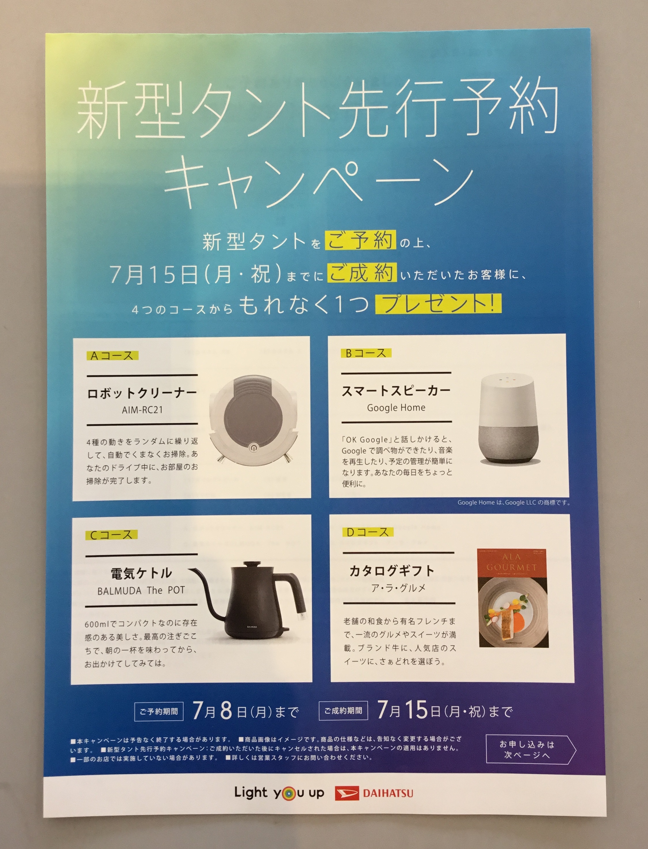 新型タントを7月7日(日)までにご予約の上、7月15日(月祝)までにご成約の方に、