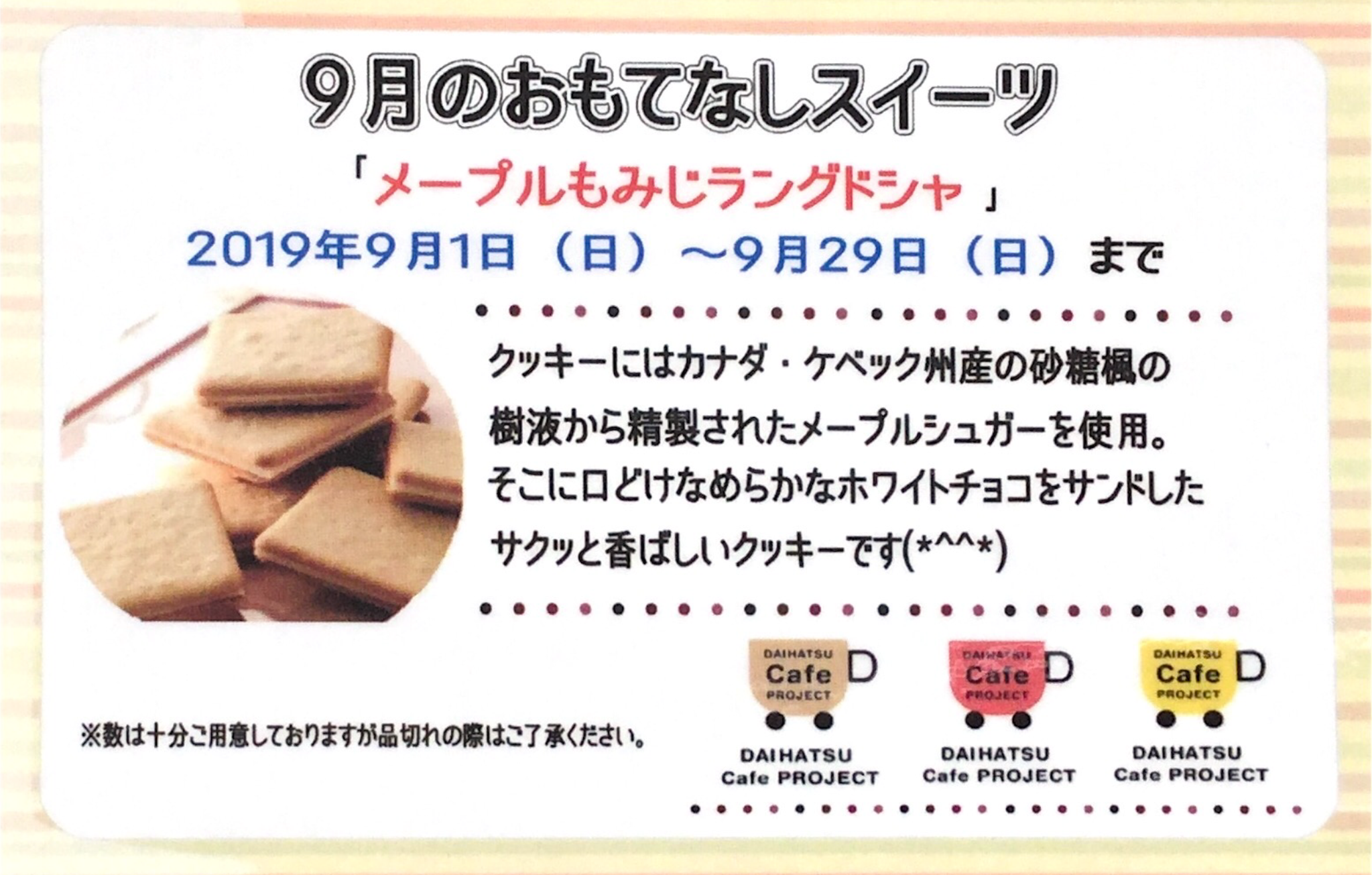9月になったのでウェルカムスイーツが変わります