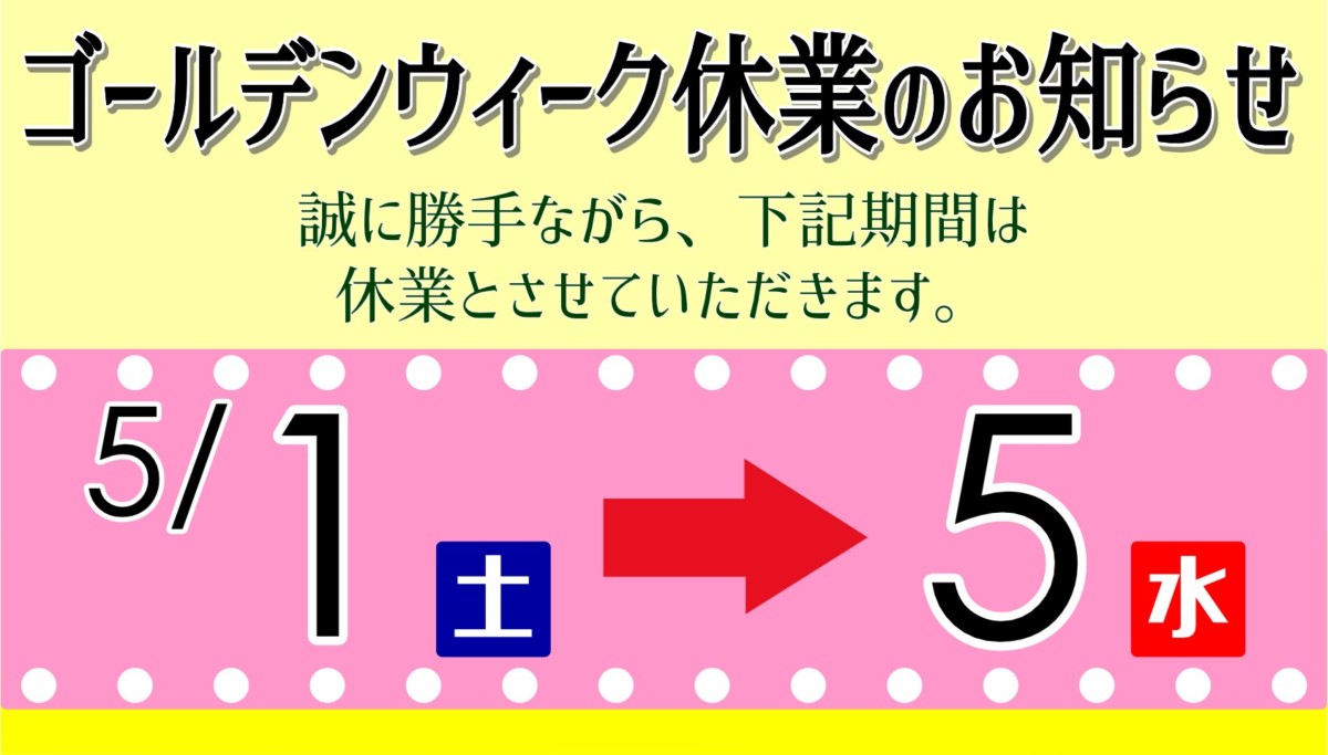 5/1~5まではお休みです!