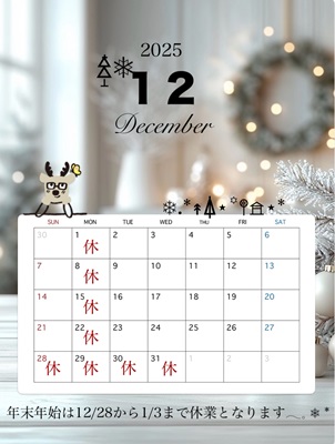 12月営業日のご案内です🎄✨
