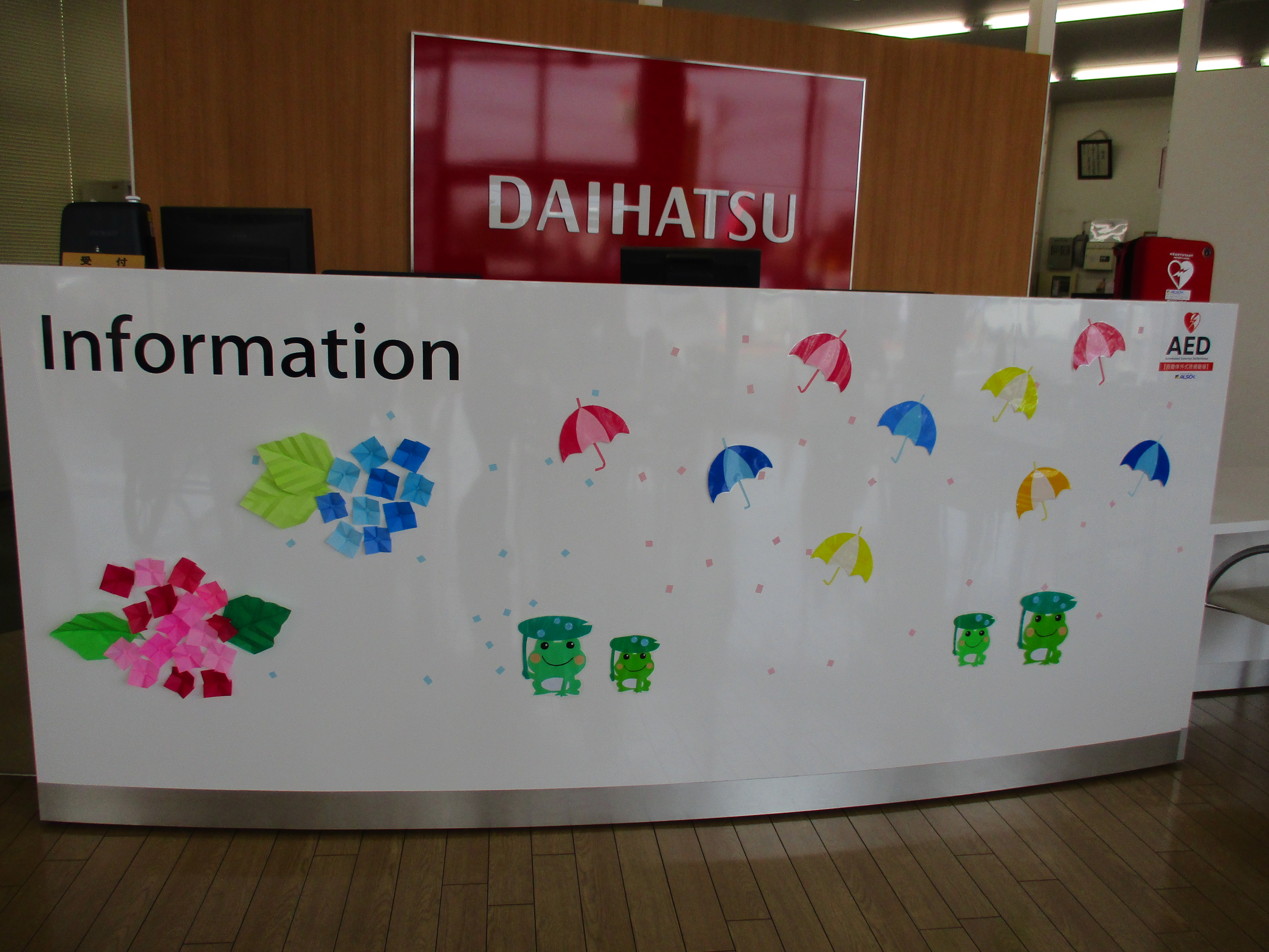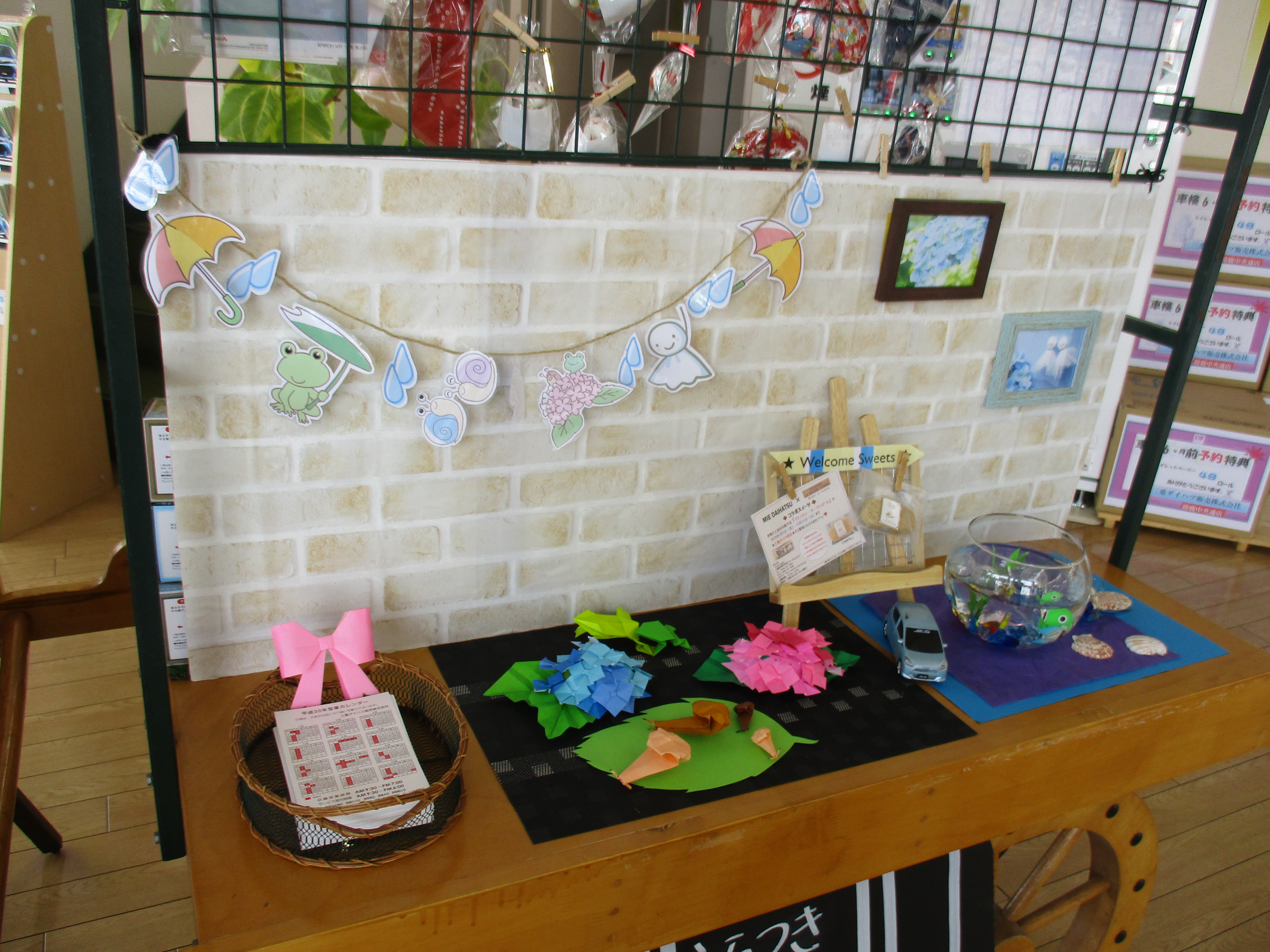 カウンターを梅雨仕様に飾り付けしました♪