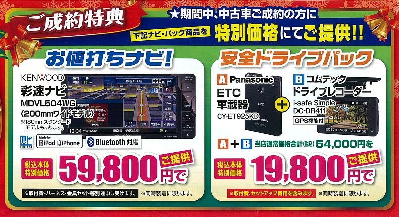 好評につき、今月もやっておりますお値打ちナビ&安全ドライブパック!!