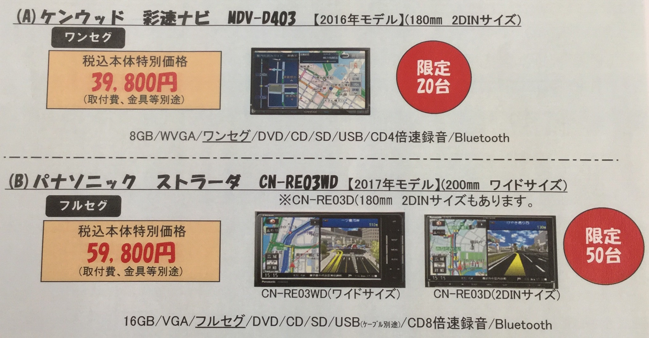 パナソニック ストラーダ =59,800円