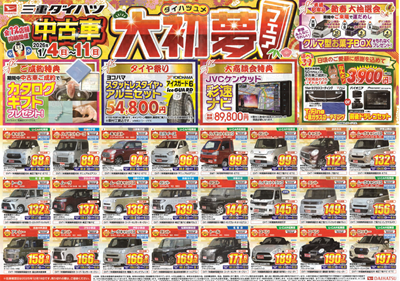1月4日~1月11日の間、中古車大初夢フェアを開催致します🎀